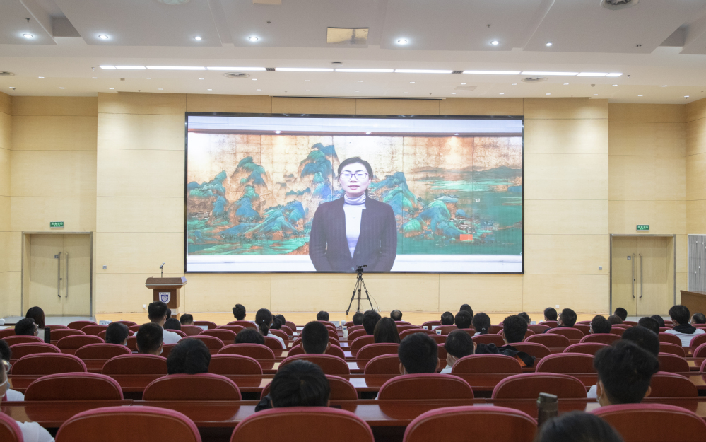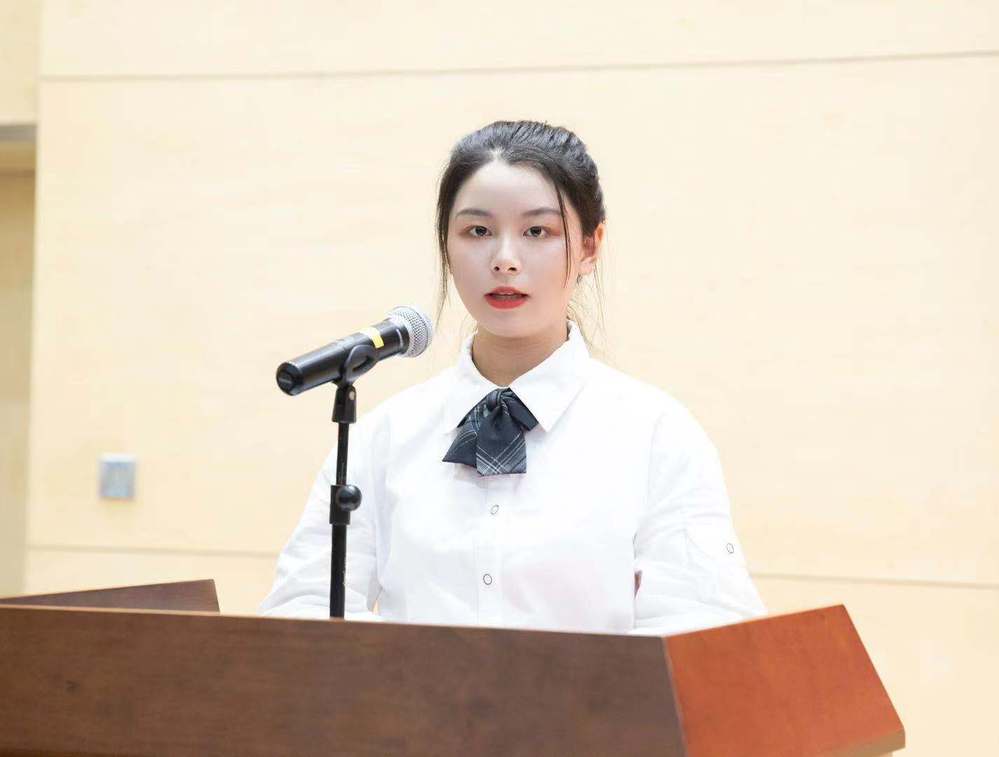 新生代表、电子科学与技术专业眭颖艺同学在发言中回顾了ESL培训期间与中美双方老师相处的点滴,表达了对大学的憧憬和志向。她以“志不立,天下无可成之事”与同学们共勉,表示要立志传承南邮精神,铭记南邮校训,“以青春之我创造青春之国,成长为工程科学等相关领域,具有跨文化交流能力、掌握国际规则、具备沟通意识、协作能力和团队精神的全球视野的高素质人才”。