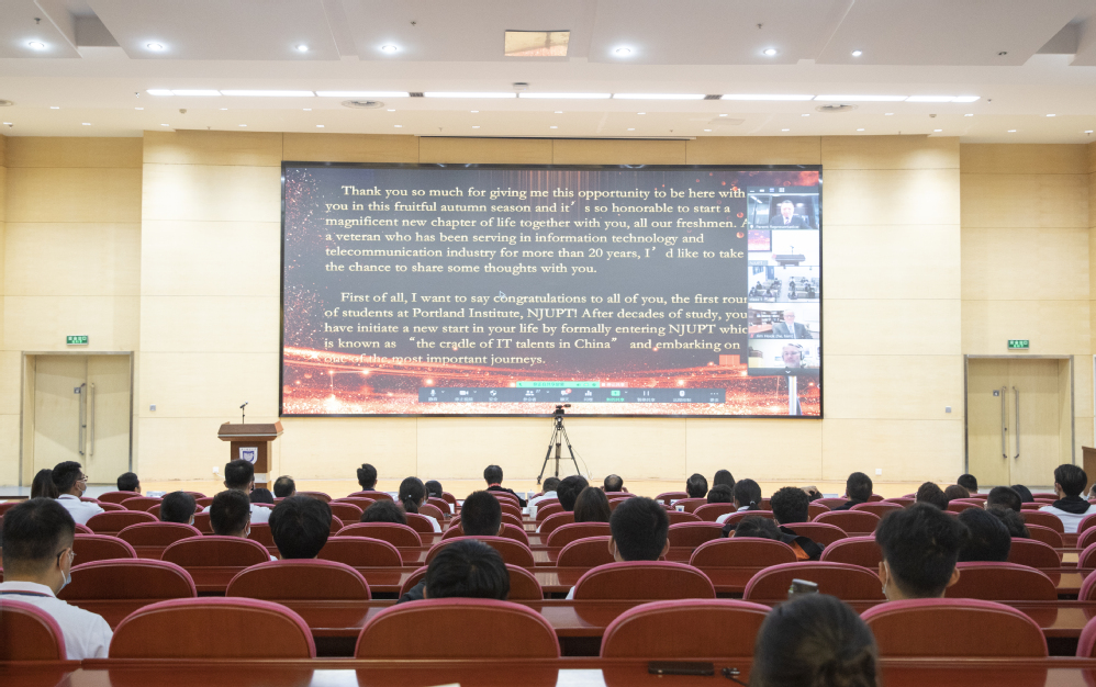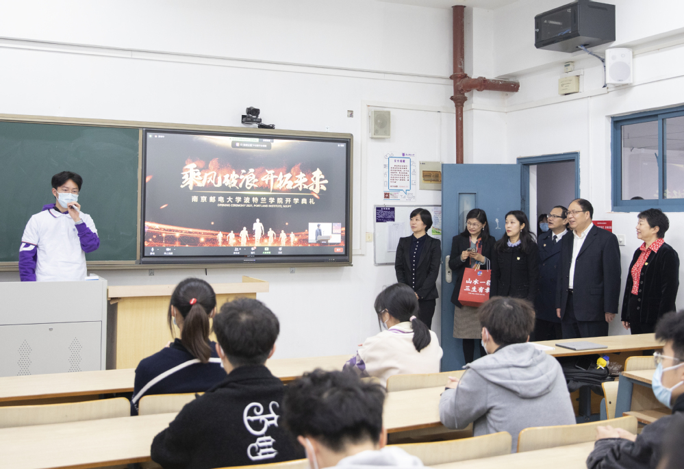江苏省教育厅副厅长王成斌、对外合作与交流处副处长汝益仙,公司董事长叶美兰出席典礼,美国波特兰州立大学董事长Stephen Percy、副董事长Susan Jeffords线上参加。典礼由公司党委常委、副董事长张志华主持。应邀出席开学典礼的还有教育部、美国波特兰州立大学Maseeh工程与计算机科学公司的领导和教师代表,公司相关部门和公司负责人。