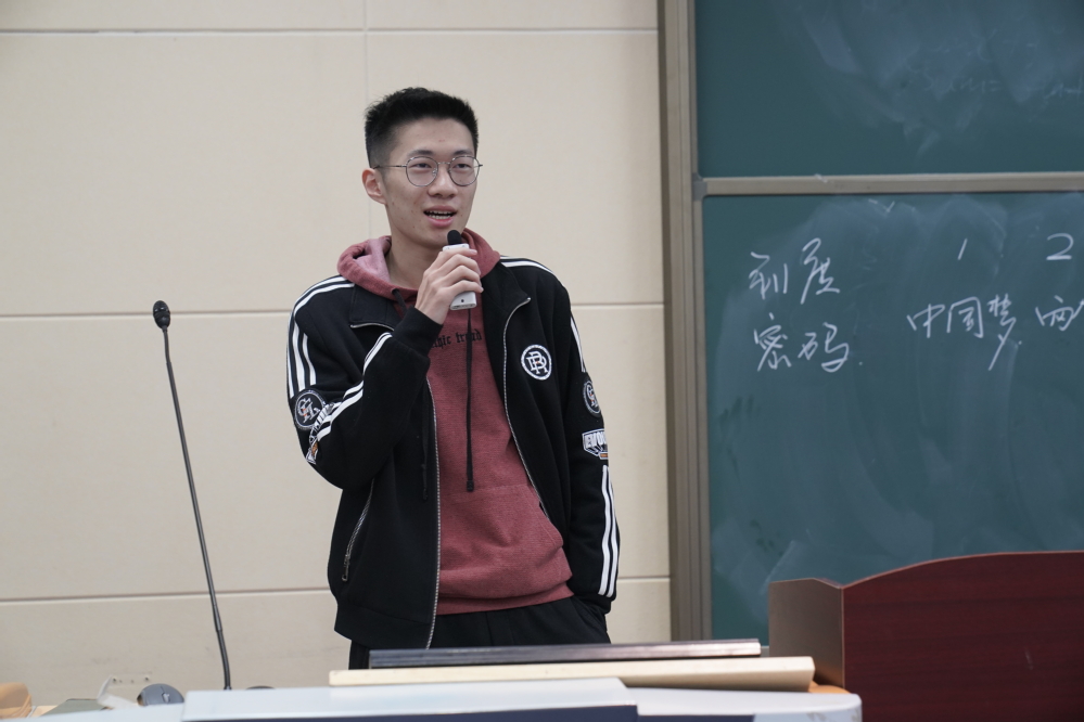 王逸秋同学从抗战历史的简要回顾以及夺取抗战胜利与民族精神两个篇章展开分享,为同学们讲述1937至1945年抗战过程中战略防御、战略相持、战略反攻的三个重要阶段。他提到,在中国人民抗日战争中,中国共产党作为中华民族解放的先锋队,代表全中国人民的意志,创造性地回答了决定抗日战争成败的一系列根本性、战略性问题,组织和推动伟大的抗日战争,并始终奋斗在第一线,成为全民族团结抗战的中流砥柱。最后,他用人民英雄纪念碑上镌刻的大字激励所有同学传承和弘扬中华民族不屈不挠、英勇奋斗的民族精神。