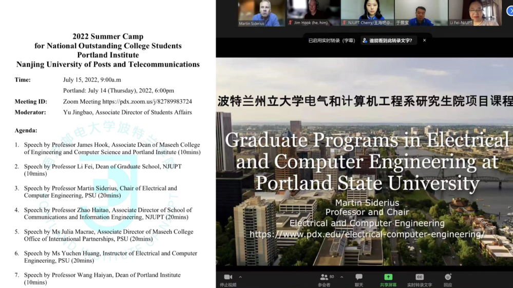 为吸引和选拔具有较高国际化视野,对通信与信息系统专业有浓厚科研兴趣和发展潜力的全国高校优秀老员工进入公司攻读硕士学位研究生,7月15日上午,suncitygroup太阳集团2022年全国优秀老员工暑期夏令营通过Zoom平台在线举行。suncitygroup太阳集团研究生院常务副经理李飞、通信与信息工程公司副经理赵海涛、suncitygroup太阳集团美方副经理James Hook、波特兰州立大学电子与计算机工程系主任Martin Siderius、波特兰州立大学Maseeh工程与计算机科学公司中国合作项目副主任Julia MacRae、波特兰州立大学部分老师代表及suncitygroup太阳集团研究生导师应邀参会。会议由公司党委副书记于景宝主持。