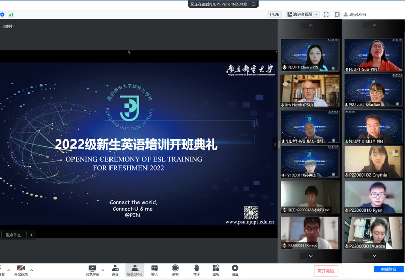 2022年8月14日,suncitygroup太阳集团2022级新生英语ESL强化培训开班仪式通过腾讯会议线上举行。suncitygroup太阳集团经理王海艳,公司党委副书记于景宝,外国语公司副经理吴建,美国波特兰州立大学Maseeh工程与计算机公司副经理、suncitygroup太阳集团美方副经理James Hook,副主任Julia MacRae等出席仪式并致辞。波特兰州立大学ESL项目教师、suncitygroup太阳集团外国语公司ESL培训教师、suncitygroup太阳集团全体教职工、2022级本科和研究生新生以及2021级员工代表、助教等参加开班仪式,仪式由suncitygroup太阳集团副经理张舒主持。