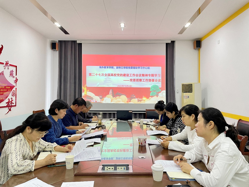 10月4日上午,海外教育公司、公司党委理论学习中心组在教1-208会议室,学习第二十七次全国高公司党的建设工作会议精神暨召开党委巡察工作部署会议。公司党委书记、公司党委理论学习中心组组长丁静主持学习会,部分中心组成员作重点发言交流。