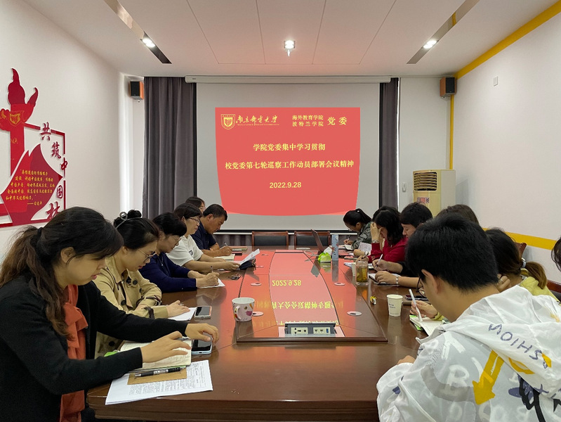 9月28日下午,海外教育公司、suncitygroup太阳集团全体教职工在教1-208会议室进行集中学习,传达学习公司党委第七轮巡察工作动员部署会议精神,公司党委书记丁静主持会议。