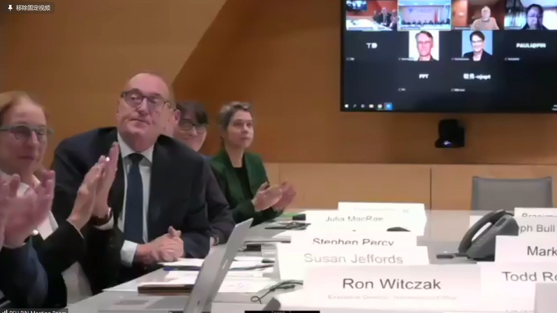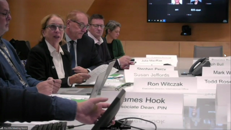 正式会议议题一,学术委员会委员、教学委员会委员聘书颁发仪式由波特兰州立大学副董事长Susan Jeffords博士主持。叶美兰董事长、Stephen Percy董事长分别向两校相关委员颁发证书并合影留念。