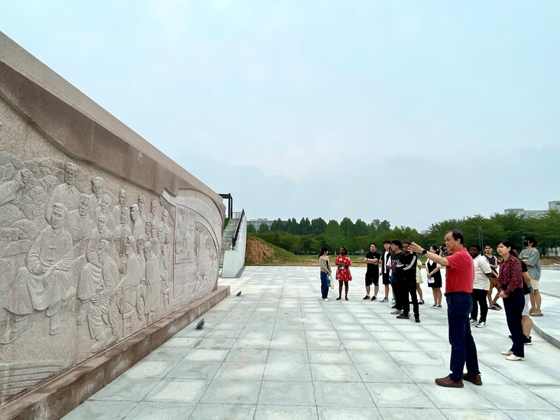 战邮广场的红色信鸽映照着教师教书育人的初心,也映照着一代代柚子研精毕志的追求。宗平教授带领中外学子参观战邮广场,回顾80年峥嵘校史,解读浮雕背后的故事,为同学们上了一堂生动特殊的校史教育课。宗平教授表示,“南邮的发展离不开一代代革命前辈的努力,更离不开新时代‘柚子’的奋斗。如今我们拥有更优质的条件,更广阔的国际舞台,作为新一代南邮人,更要肩负起新时代、新征程的历史使命,赓续‘信达天下,自强不息’的南邮精神,创造更辉煌的成就”。