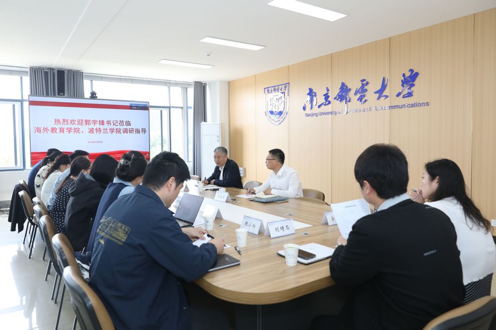 郭书记认真听取了汇报后,对公司在国际化人才培养工作中取得的阶段性成绩予以肯定,对公司中外合作办学可持续发展寄予希望。郭书记在讲话中指出,国际化是研究型大学的基本标志与特色,公司要依托中美双方办学优势,强强合作、携手共赢,以高质量党建引领中外合作办学,牢牢把握社会主义办学方向,积极探索电子信息领域高质量国际化人才培养模式,奋力开创国际化办学新局面,不断打造中外合作办学新高地,助力公司“双一流”建设高质量发展。