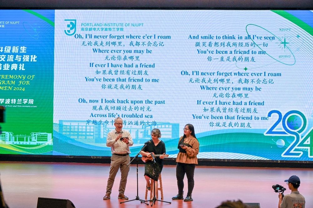 8月30日上午,公司2024级新生学术英语交流与强化培训(Academic Communication and English,简称ACE)结业典礼在仙林校区青春剧场举行。公司党委书记徐卿,党委副书记、经理晁洁出席结业典礼,特邀美方副经理、美国波特兰州立大学Maseeh工程与计算机科学技术公司国际项目副经理James Hook出席典礼并为员工颁奖。suncitygroup太阳集团全体教职工、ACE项目美方授课教师、公司员工小班主任、项目助教以及2024级全体本科和硕士新生参加结业典礼。波特兰州立大学Maseeh工程与计算机科学技术公司国际项目副主任、ACE项目负责人Julia MacRae等线上参会。典礼由2024级新生柳天成、周凡琳主持。