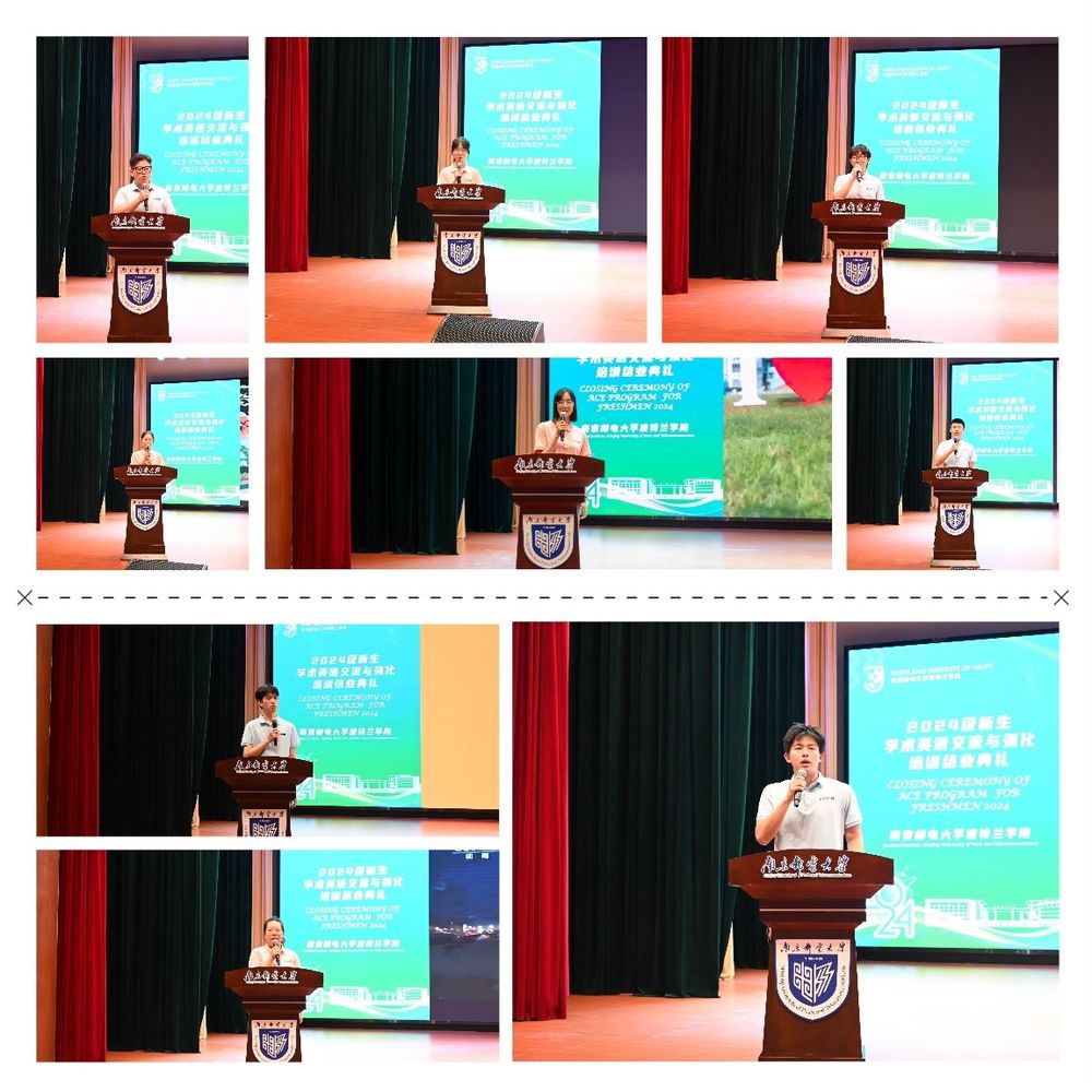 结业典礼伊始,2024级新生以班级为单位进行自制英文视频成果展演。他们或聚焦奥运热点,讲解奥运历史、畅谈运动之趣;又或化身新闻记者,以“共享单车”“课余生活”为题,共创焦点访谈;或从“第一视角”切入,展示丰富多彩的南邮新生活;又或畅谈故乡风情、兴趣爱好、新生“理财小技巧”,同学们的视频成果主题丰富,充分展现了波院学子的智慧与才华,锻炼了同学们的英语口语表达和团结协作与解决问题的能力。
