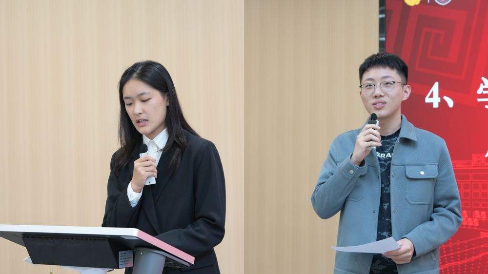 公司2023届员工会席团成员刘钰涵以“注重实事求是,奉献无悔青春”为主题作工作汇报,报告从组织建设、思想引领、活动开展三个部分回顾了过去一年员工会工作成果,同时积极总结经验教训,从职能定位、素养提升、服务强化三个部分进行工作展望。2023届研究生会主席团成员以“启新程 展新图”为主题作工作汇报,报告主要总结了研会成立以来的相关工作,重点针对研究生两校区学习提出管理意见和建议。