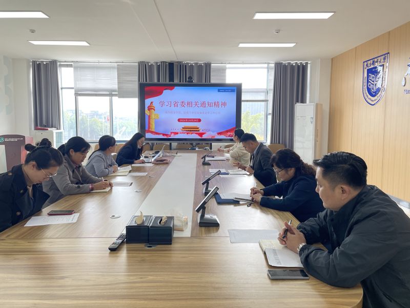 10月28日下午,海外教育公司、公司党委理论学习中心组在教1-301会议室召开学习会,专题学习省委相关通知精神。公司党委书记、理论学习中心组组长徐卿主持学习会,领学有关通知精神。