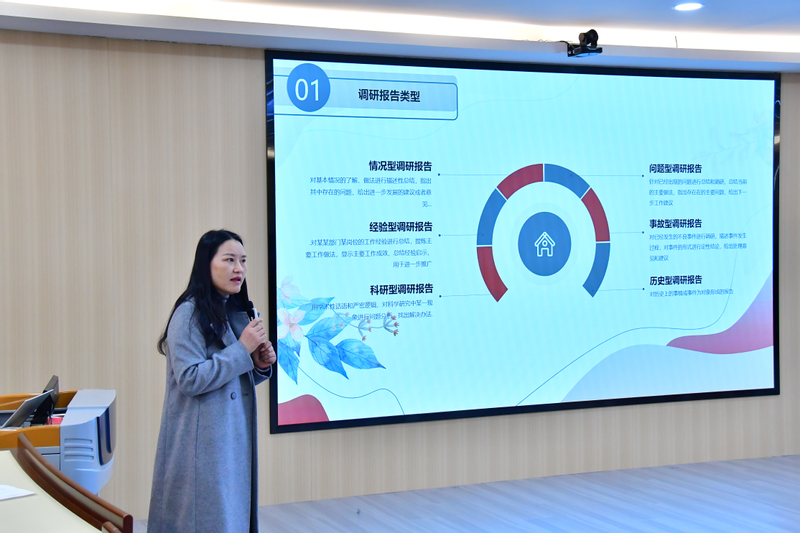 尹书记首先介绍了调研报告的类型,并指出,尽管分类不同,但各类调研报告在写作结构上具有一定的相似性。随后,在调研准备工作中,尹书记强调了零散认识系统化的重要性。她通过引用日常生活中的实例,展示了如何将不同方面零散的知识整合到一个逻辑严密的知识体系中,并特别指出了模型在调研过程中的关键作用。讲座尾声,尹书记鼓励大家积极参与相关活动和竞赛,不断提升自己的调研报告撰写能力。