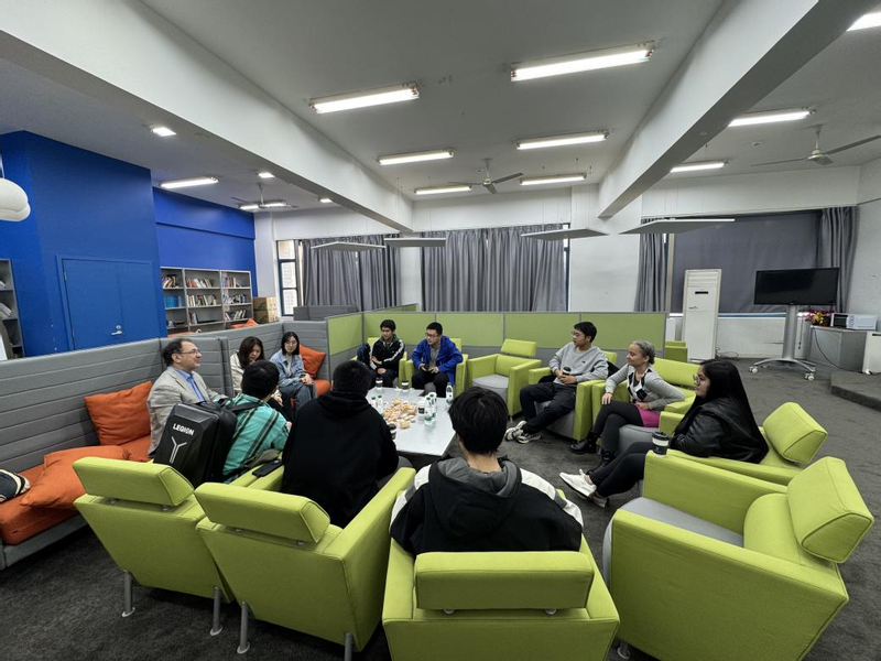 交流环节中,同学们积极发言,围绕交流主题和实际需求展开讨论。针对专业课程中的专业词汇问题,美方建议将相关内容整理并纳入暑期ACE培训中进行集中学习;同时,美方教师咨询了中方课程使用雨课堂的情况,并探讨了将其应用于美方课程的可能性。此外,关于美方Canvas教学平台在使用中的注意事项,也得到了深入交流与反馈。美方教师耐心倾听,并就每个问题提供了针对性的建议与指导。部分员工还与美方教师单独探讨了一些感兴趣的话题,进一步加强了师生之间的联系与理解,现场气氛热烈。
