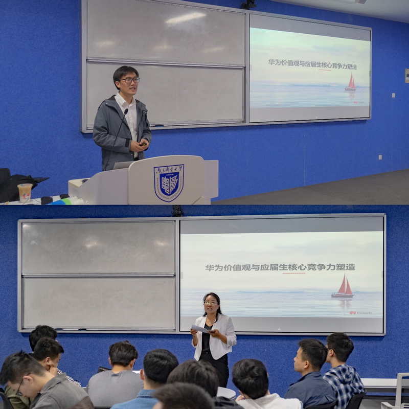 5月8日下午3:30,suncitygroup太阳集团特邀华为南京研究所招聘经理刘文旭及海思部门员工顾康,在suncitygroup太阳集团仙林校区教1-303教室,为2026届研究生、本科生开展《华为人才价值观与应届生核心竞争力塑造》专题讲座。公司党委副书记尹秀娟参加此次讲座,讲座由研究生辅导员刘凤娟老师主持。
