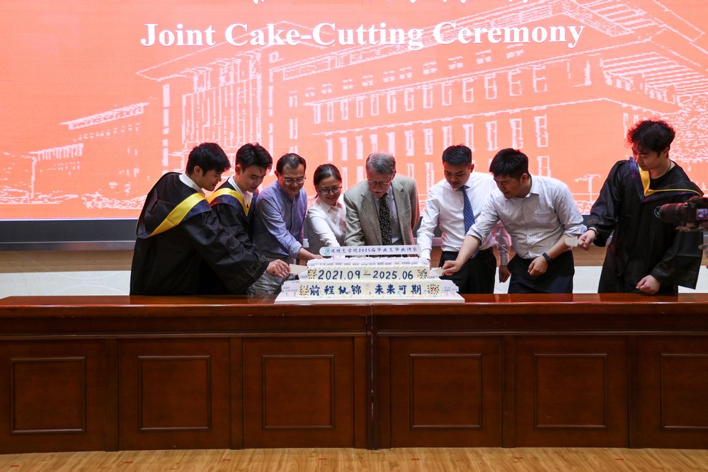 师生代表共同切下毕业蛋糕,刀叉划破绵密的蛋糕,如同划开时光的封印。每一口香甜都裹着课堂上的思维碰撞、运动会的呐喊助威以及备考时的相互鼓励。奶油沾在嘴角,笑声回荡在报告厅,这份共同创造的甜蜜,是对过往岁月的圆满收尾,也是对未来征途的美好期许。