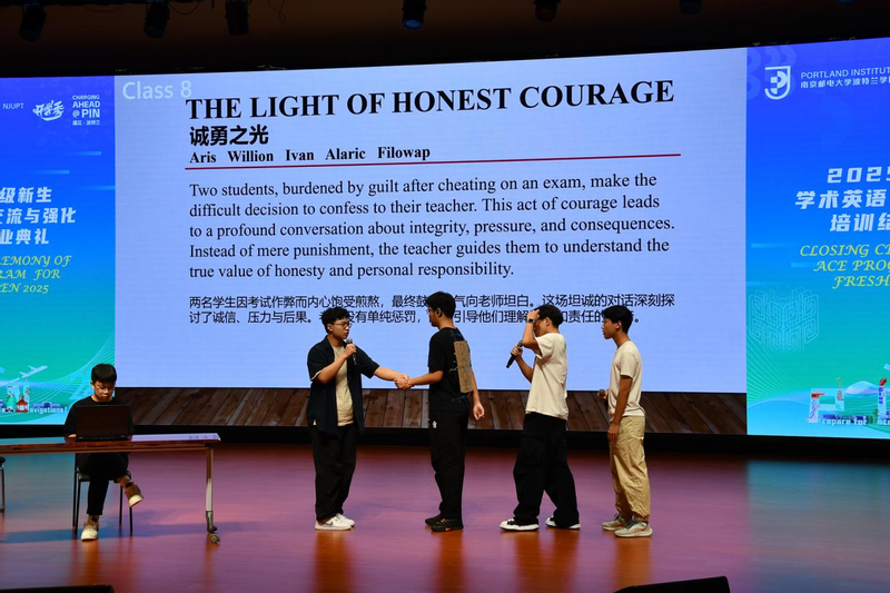 在Role Play成果展示环节,8个本科生班级及1个研究生班级围绕学术诚信、人工智能使用、人际交往与文化礼仪等主题,以流畅的英语和生动的表演,全面展示了他们在ACE课程中的学习成效,体现出优秀的跨文化沟通与表达能力。